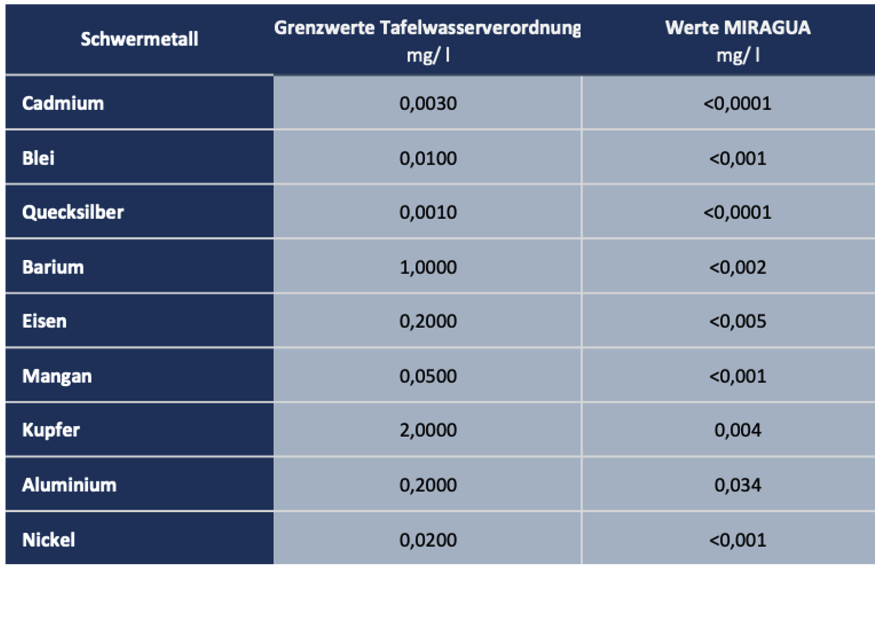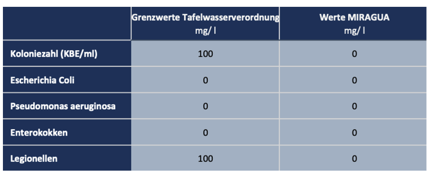 (WHO) für Trinkwasser. Außerdem ist unser MIRAGUA-Wasser vom TÜV Rheinland mit
